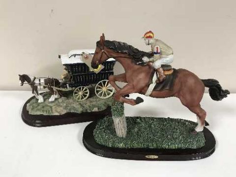Juliana Collection figure - jockey on horseback with a Leonardo Collection Romany Gypsy caravan