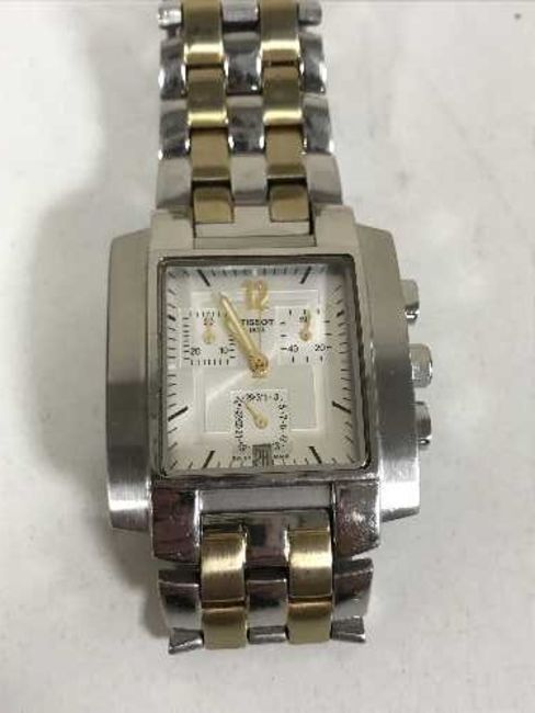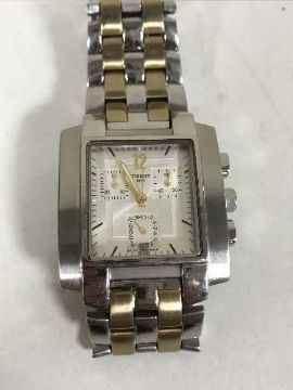 A Tissot gent's wrist watch and a pair of miliary cased binoculars in case marked Royal Artillery