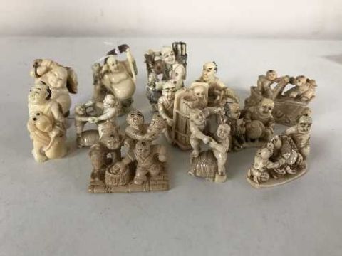 A group of twelve Japanese netsukes depicting figures