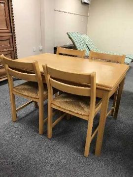 A contemporary extending table and four beech chairs