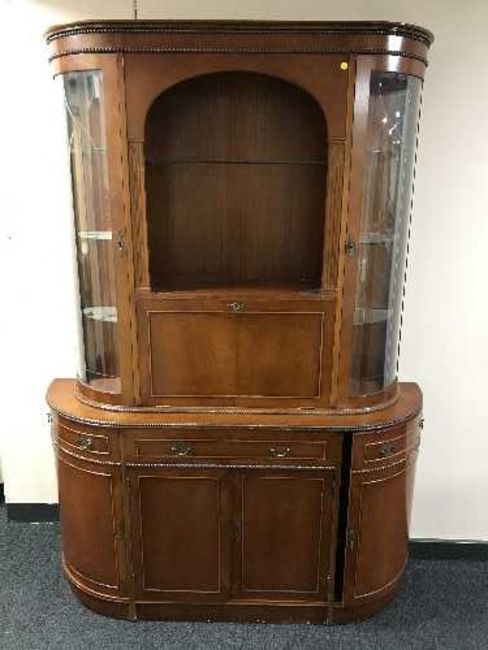 A mahogany bow-fronted bureau display cabinet