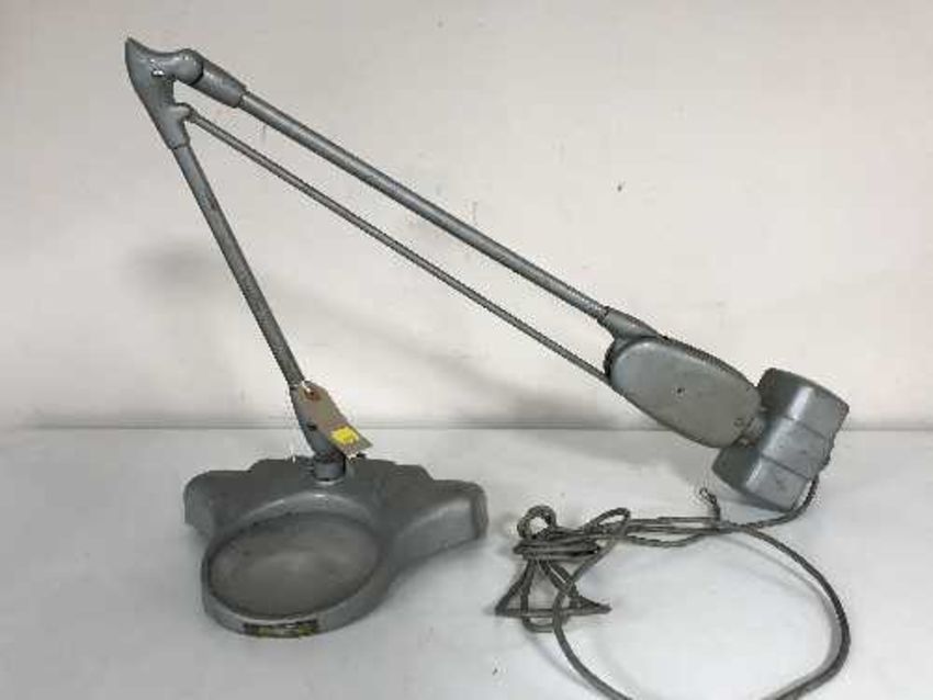 A mid 20th century industrial angle poise lamp with magnifying glass