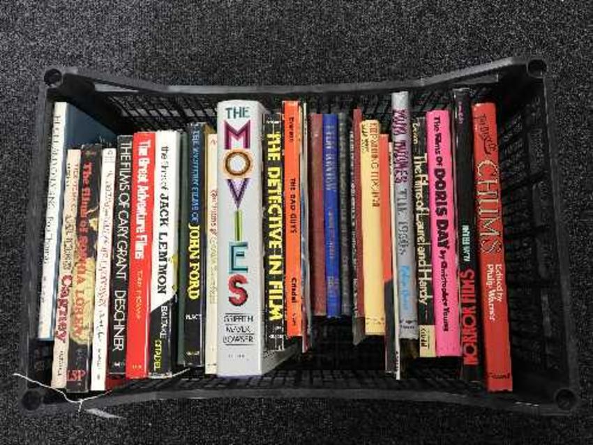 A box of books relating to Hollywood and the movie industry - Cary Grant, Jack Lemon etc