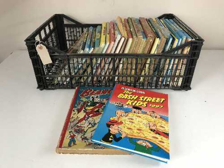 A box of mid 20th century and later annuals - The Beano, Whizzer & Chips, etc