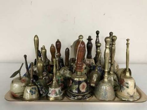 A tray of brass floral bells