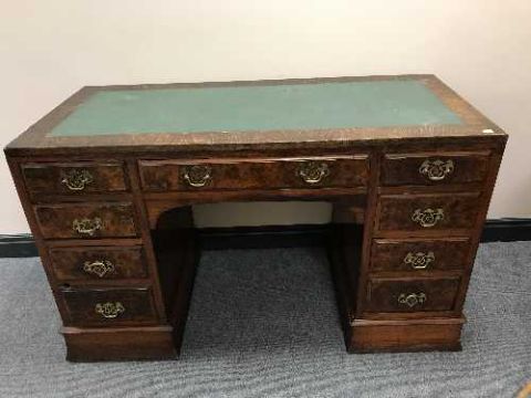A Victorian twin pedestal desk inset green leather panel
