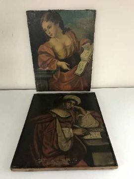 19th century school : A woman in Persian dress at a writing table, oil on canvas, together with a similar oil on canvas study of a lady (2)