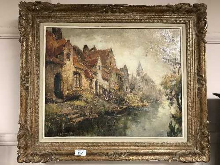 Alfred Joseph Auguste Van Neste (Belgian 1874-1969) : Petit Canal, oil on canvas, signed, 40 cm x 50 cm, framed.