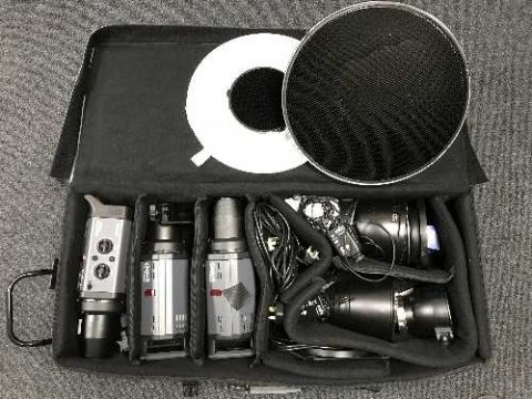 A Bowens 750 x 3 Speedlight photographic studio kit - travel pack and charger, pocket wizard 750 fast speed lamps, case with stand and light boxes