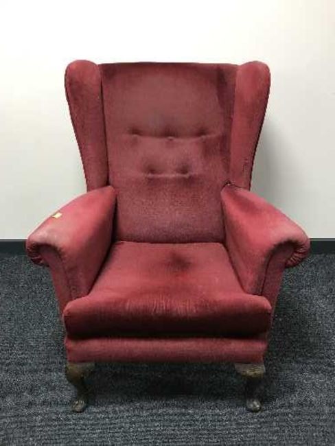 A red buttoned dralon wing backed chair
