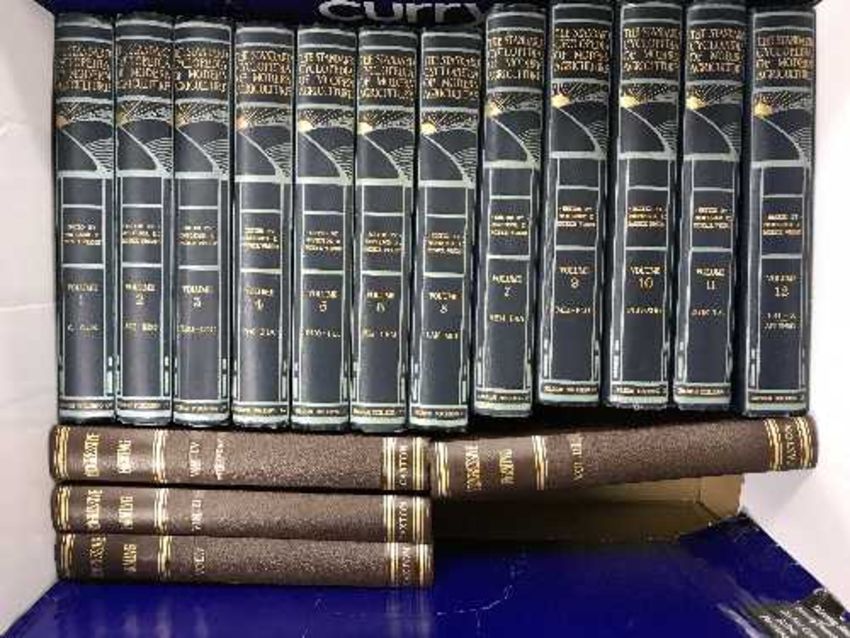 A box of twelve volumes The Standard Cyclopaedia of Modern Agriculture and four volumes Progressive Farming