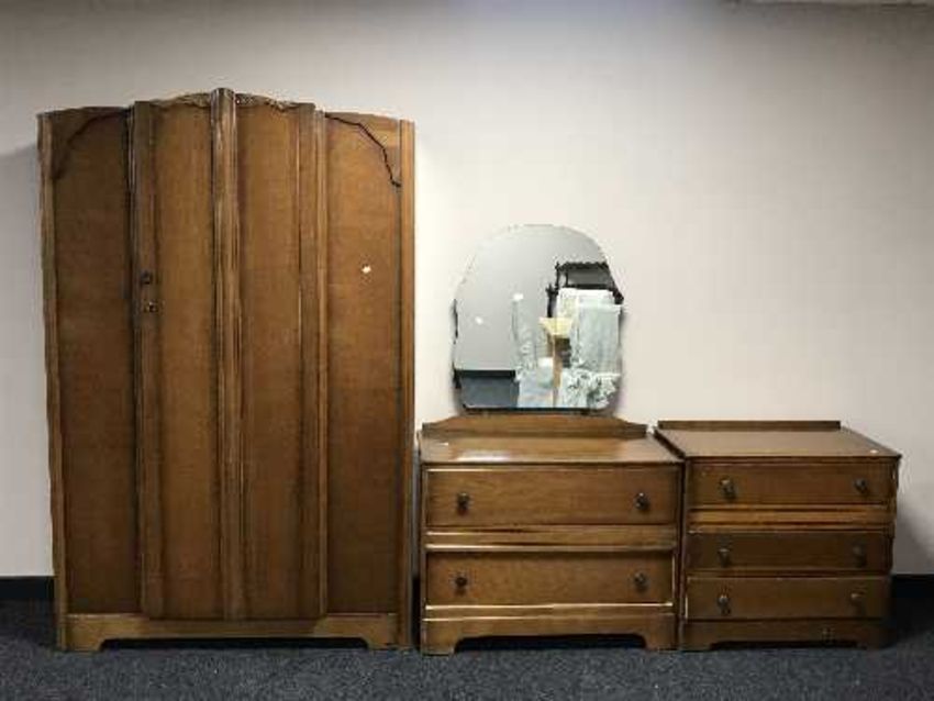 A three piece oak Beanese bedroom suite