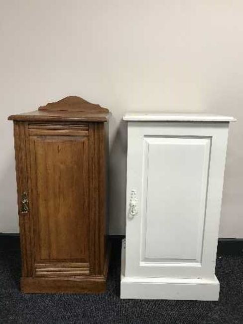 An Edwardian mahogany pot cupboard together with a painted pot cupboard