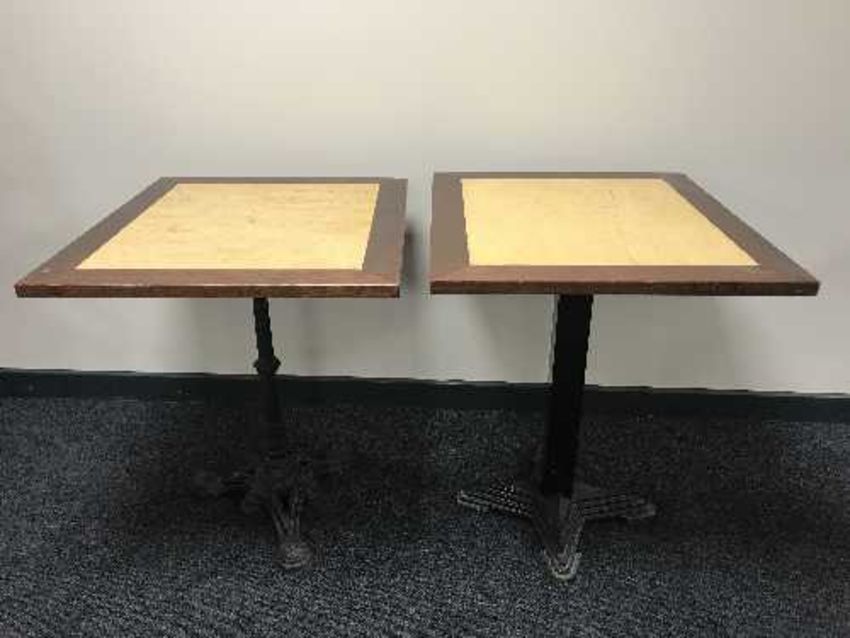 Two rectangular cast iron based pub tables