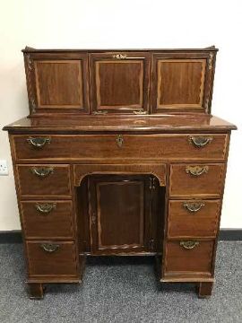 An Edwardian inlaid mahogany writing desk, width 84 cm