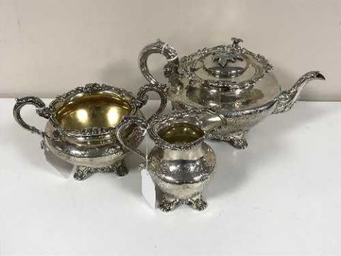 A 19th century composite silver three-piece tea service, 1838 and later, 1605g