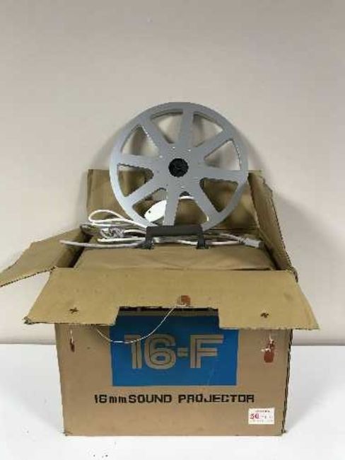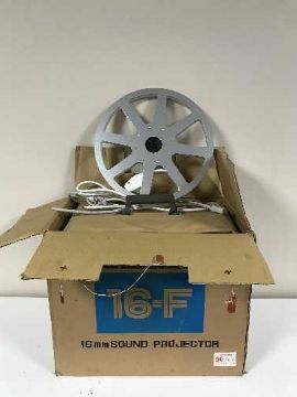 A boxed Elmo 16-F 16mm sound projector