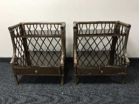 A pair of bamboo two tier bedside tables fitted with a drawer