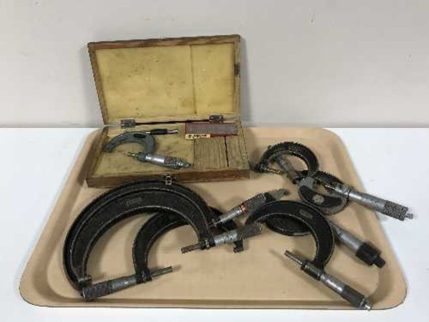 A tray of five assorted precision calliper remeasures, two cased calliper remeasures, a cased Mitutayo calliper gauge and a cased Intertest calliper with gauge
