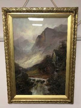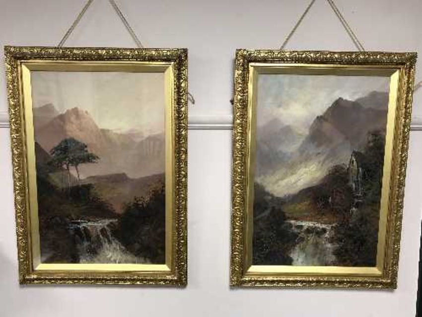 Joel Owen : Highland stream by a watermill, oil on canvas, signed, dated 1922, together with the companion piece, framed. (2)