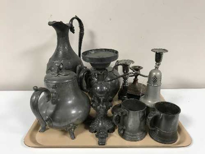 A tray of 20th century plated and pewter ware