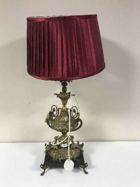 A French gilt decorative table lamp on marble base with shade