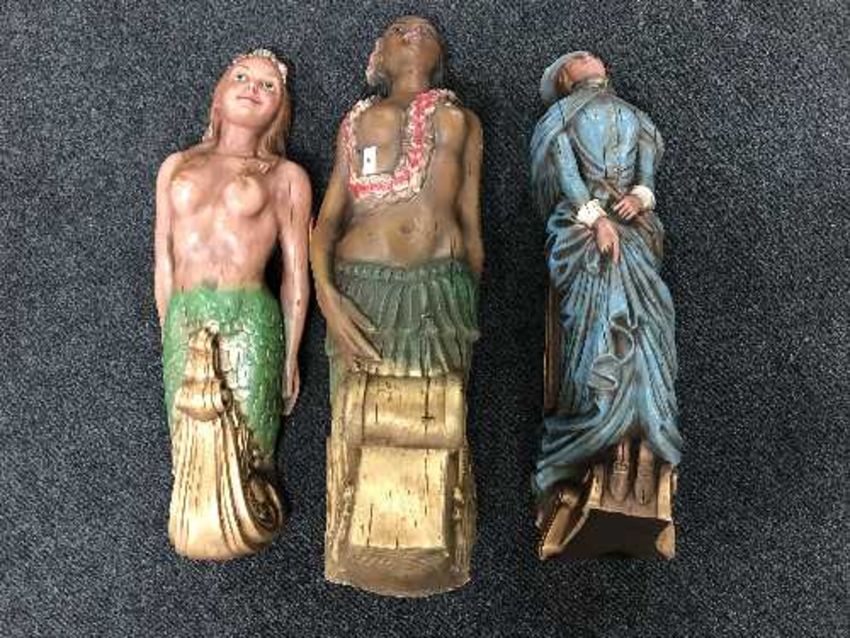 Three plastic ship's figure heads