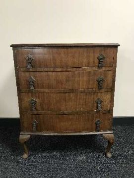 A walnut Queen Anne style four drawer chest