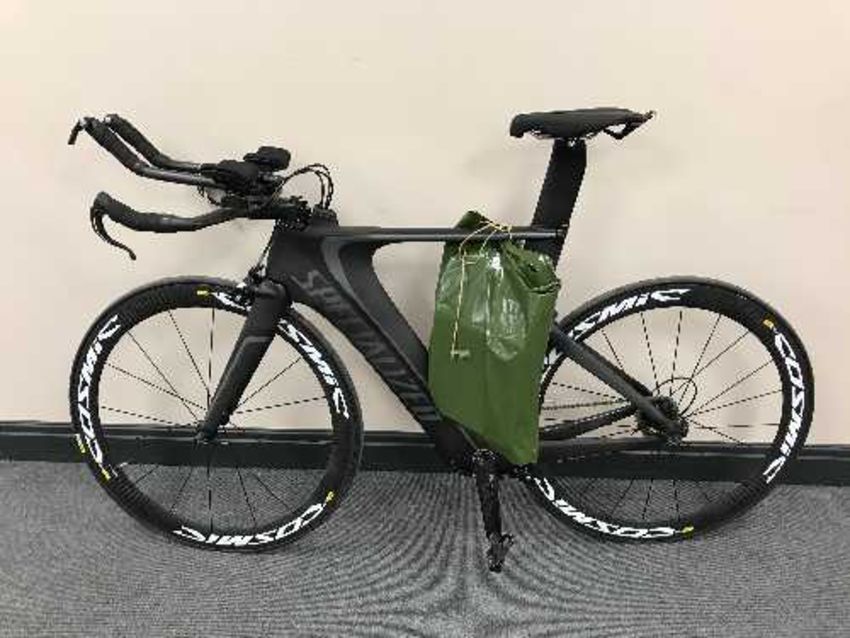 A Specialised Shiv triathlon bike : Frame size S, crosswind-optimised airfoils, with fuselage integrated hydration system and fuelcell ; Forks : Specialized Fact Aero Carbon, Front Derailleur Shimano Ultegra, Rear Derailleur Shimano Dura-Ace, 11-speed ; Number of gears : 22 ; Shimano shifters ; Pedals : Look KEO 2Max, Profile Design brake leavers, Cosmic SLE Mavic wheels, Saddle : Sitero Body Geometry.