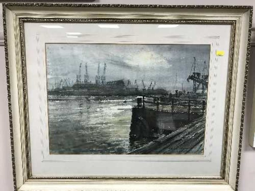 Albert Henry Herbert (1914-1982), Port of Tyne, watercolour with pen and ink, signed