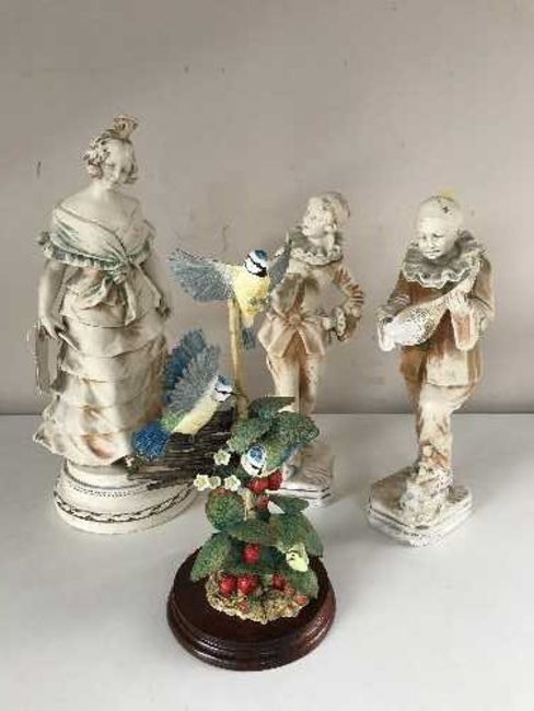 Three early 20th century chalk figures, Border Fine Arts figure of blue tit family with certificate