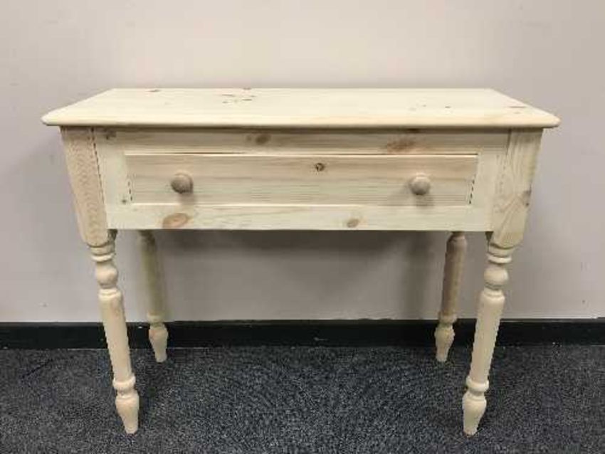 A pair of light pine side tables fitted with a drawer, width 91 cm. (2)