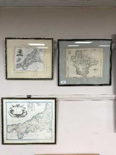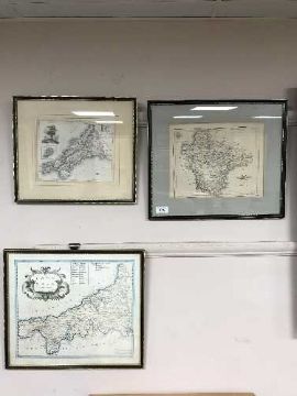 After Robert Morden : Cornwall, reproduction in colours, together with two other maps of Cornwall and Devonshire, all parts framed, (3)