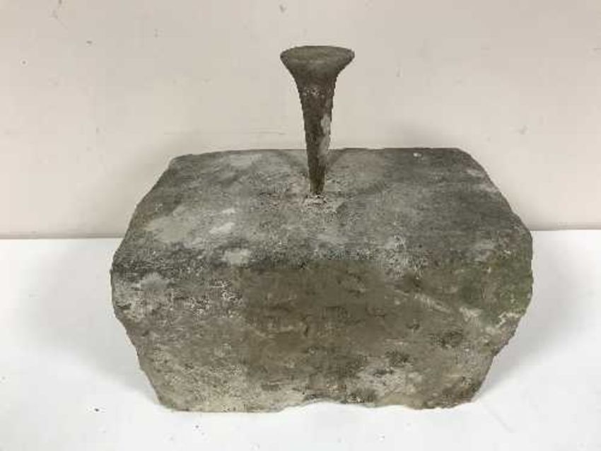 A boot scraper on sandstone base