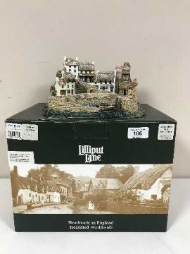 Three boxed Lilliput Lane ornaments - Yule Tide Harbour 1481, Durham Cathedral 064 and Yule Tide Shambles 0153