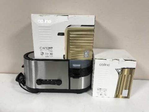 A boxed Cooper's 28 litre table top oven, together with two boxed toasters and a kettle