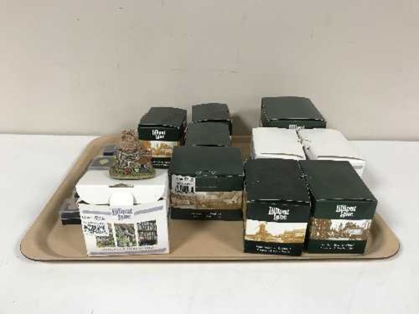Ten boxed Lilliput Lane ornaments - Little Tea Caddy, Frosty Fun, Christmas Bakery etc and nine boxed Lilliput Lane collector's pin badges