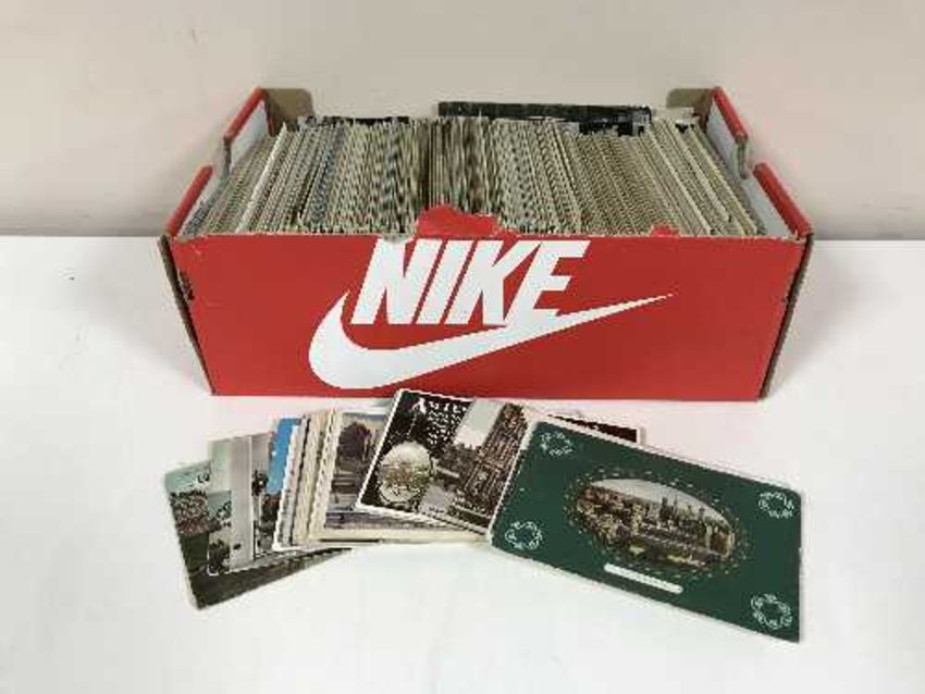 A shoe box of mixed 20th century postcards