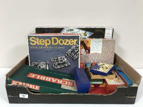 A box of assorted board games inc. Jet World Travel Game, Test Cricket etc