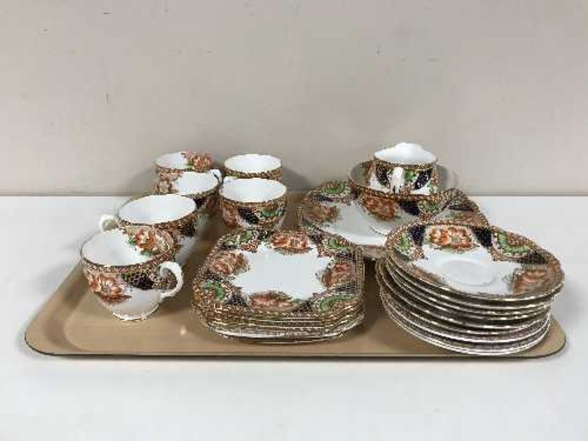 A tray of twenty-three pieces of Bell bone china tea china, pattern no. 2912