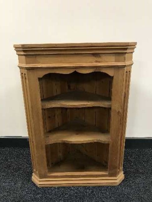 A pine wall mounted corner cabinet