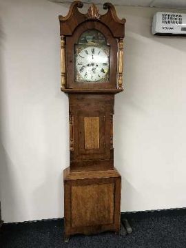 A late 19th century mahogany long cased clock with painted dial, Shotley Bridge, with pendulum weights and key