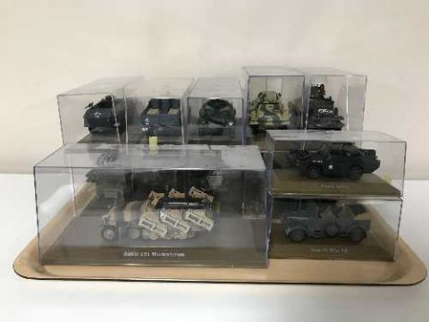 A collection of die cast tanks and military vehicles