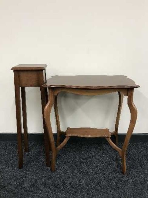 A shaped mahogany two-tier occasional table together with a mahogany plantstand