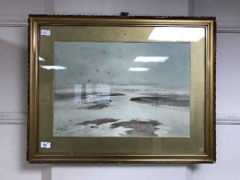 Thomas Swift Hutton, Beach at low tide, watercolour