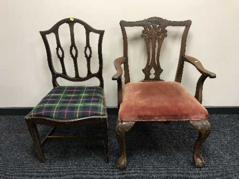 A George III style carver armchair and one other chair
