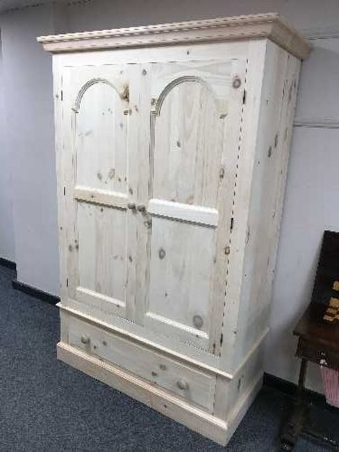 A light pine double door wardrobe fitted a drawer