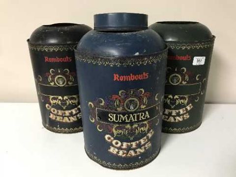 Three Rombouts Coffee Bean toleware caddies