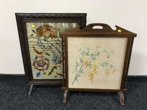 Two early 20th century oak framed tapestry fire screens