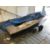 A 14' wooden sailing boat with mast and sail on double axel aluminium trailer